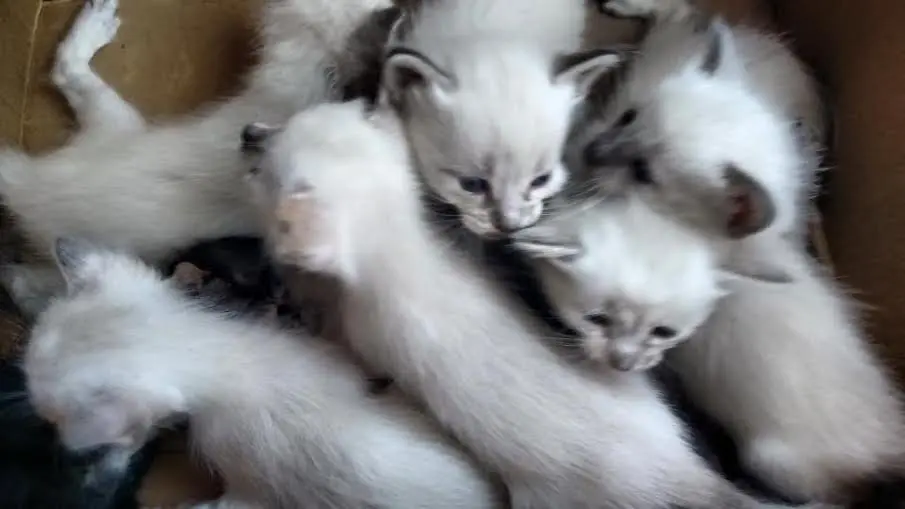 A resgatante encontrou 8 gatinhos em uma caixa em pleno sol das 15h. Dois deles foram deixados em um matagal, aparentemente para morrer. Pareciam ter menos de 2 semanas, estavam machucados, picados por insetos e com muita fome. Os outros seis, dentro de uma caixa, aparentando 3 ou 4 semanas, também com muita sede e fome.