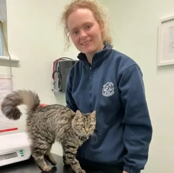 Segundo a reportagem, Roux foi inicialmente entregue a um abrigo de animais por não ter as pernas dianteiras, por seu tutor que alegava que não a queria pois ela não conseguia cobrir direito os seus dejetos na caixa de areia. Foi quando Jackie Deak Akey, uma veterinária de New Orleans (EUA), soube do caso, e tudo o que viu foi uma gata saudável que precisava de um lar amoroso, e então a adotou.