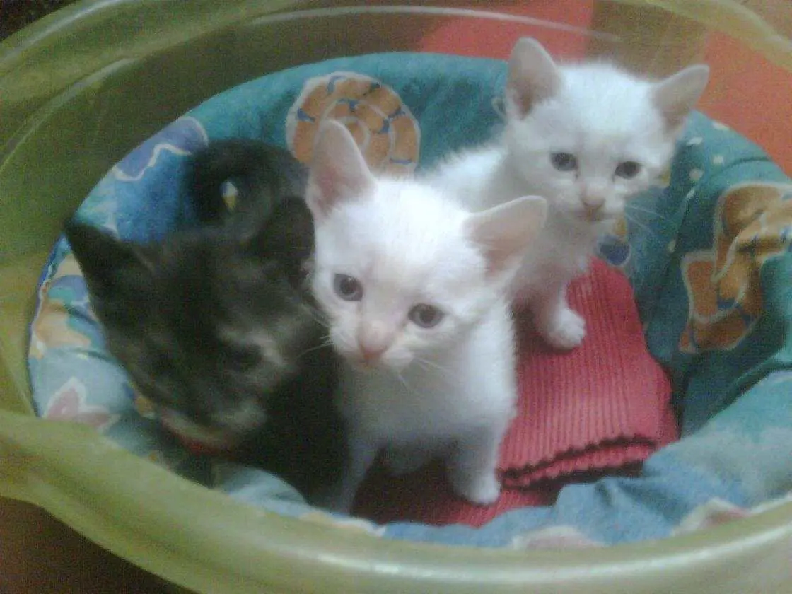 As bebês tinham acabado de nascer. Fiquei com dó e as trouxe para casa, mas não posso ficar com elas. Já castrei a mãe e arrumei alguém para ficar com ela. Ainda não consegui doar as filhotes, que já estão com um mês.