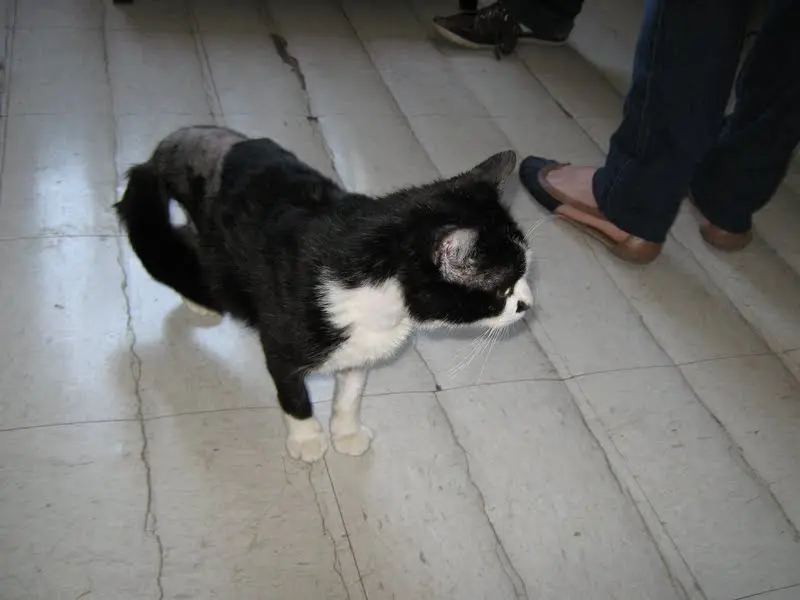 Parei um instante para brincar com ele e percebi que lhe faltava uma perninha traseira e parecia que tinha sido operado, pois o pelo estava raspado do lado sem o membro.