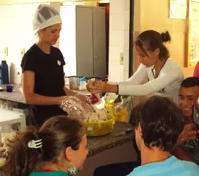As comidas foram feitas pelos membros do Grupo Fauna, Andresa Jacobs e Luciana Moro, que contaram com a ajuda dos alunos e das cozinheiras do colégio.