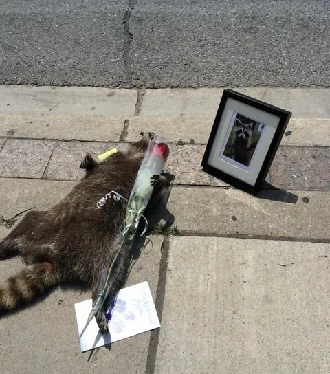 Por volta do meio-dia, alguém deixou uma mensagem ao lado do corpo do animal que dizia: “Descanse querido guaxinim. A ajuda está a caminho.” Em seguida, uma outra pessoa colocou uma rosa vermelha ao lado do animal morto. Começava então um memorial para o guaxinim.