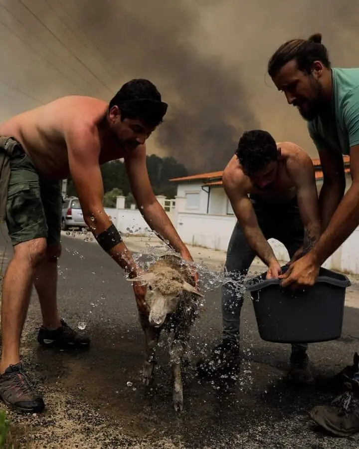 Portugal enfrenta dias de muito calor e os incêndios, que têm fustigado várias zonas do país, têm sido complicados de controlar. João Morgado foi fotografado quando transportava uma ovelha nas costas, enquanto fugia das chamas e viu a imagem tornar-se viral nas redes sociais.