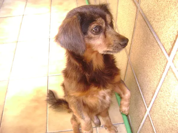 Este cãozinho foi abandonado no pátio de um estacionamento no centro do Rio de Janeiro simplesmente por ser cego! É um ser dócil e carinhoso que precisa de um tutor que possa lhe dar um lar. No momento se encontra em uma varanda provisoriamente, em Quintino (RJ).