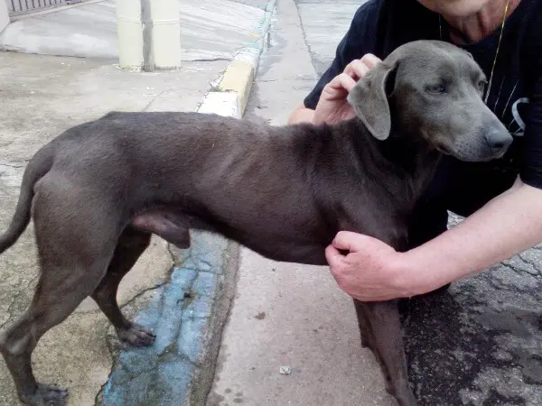 Algumas pessoas estão lhe dando comida, mas ele está magrinho, precisando de cuidados e ainda correndo o risco de ser atropelado ou judiado!