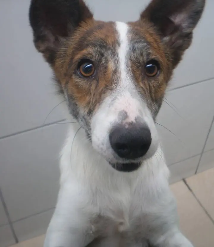 Este é o Lobo, mais uma vítima do preconceito humano. Ele tem em torno de 8 anos de idade e, por ser idoso, ninguém quer adotá-lo. Já está há muito tempo esperando por um adotante, que não aparece. Foi resgatado numa avenida de trânsito rápido, muito movimentada, no Bairro Amazonas, Contagem, onde estava há três dias estirado no chão, sem se levantar. Ele estava muito fraco, anêmico, debilitado, com babesiose (doença transmitida pelo carrapato), mas sobreviveu. A medida que ele foi sendo tratado e melhorando rapidamente, percebeu-se que ele não conseguia apoiar direito nas duas pernas da frente sem cambalear ou até cair. Para fazer xixi, se abaixava, como fazem as fêmeas, pois caía quando tentava levantar a perna, e o mesmo acontecia quando tentava pular, não tinha firmeza ou controle das pernas. A avaliação do veterinário diagnosticou além do rompimento de um ligamento, também uma sequela de cinomose. Provavelmente andaria com dificuldades pelo resto de sua vida, mas depois de passar por acupuntura e fisioterapia, ele recuperou 90% de seu equilíbrio.