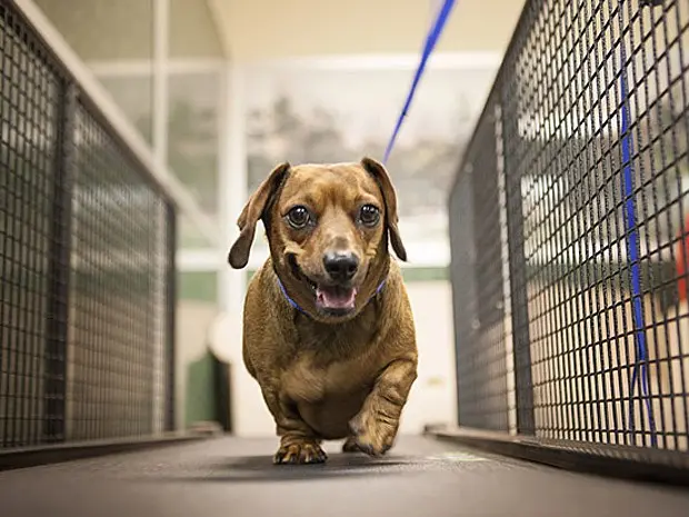 Lolita, da raça dachshund, é uma das frequentadoras do resort. Seu programa de emagrecimento inclui andar em uma esteira ergométrica – para ajudar as funções cardiovasculares – e nadar em uma piscina. O labrador Ruby também aderiu ao programa do Morris Animal Inn.