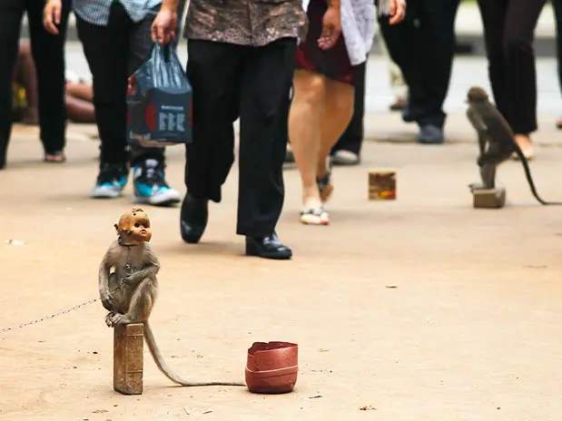 Indonésios que vivem na pobreza ou moram nas ruas passaram a utilizar uma nova forma cruel de pedir dinheiro. Em Jacarta, mendigos exploram macacos para que eles peçam esmola aos pedestres, segundo a agência Reuters. Os animais geralmente são acorrentados e posicionados perto de shopping centers e locais de grande circulação.