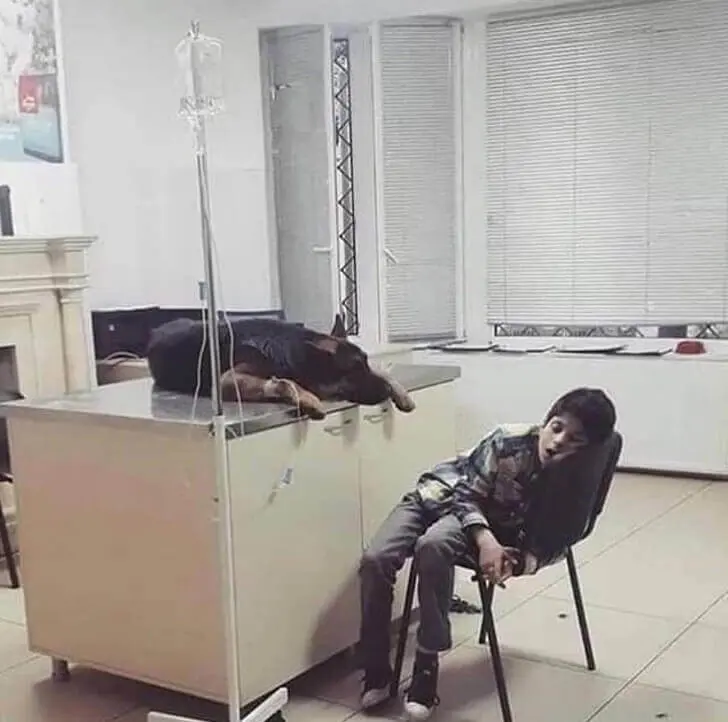 Cansado, o garoto acabou pegando no sono sentado em uma cadeira diante do cachorro, que estava deitado a sua frente. O momento marcante, que provou o amor existente entre os dois, foi registrado em uma comovente fotografia divulgada nas redes sociais da revista argentina “Subestada y Editorial”.