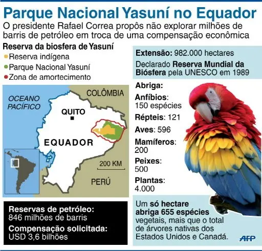 Para evitar que isto aconteça, o presidente socialista Rafael Correa propôs não explorar os 846 milhões de barris de petróleo nos campos de Ishpingo, Tambococha e Tiputini, no Yasuní, em troca de uma compensação internacional de 3,6 bilhões de dólares.