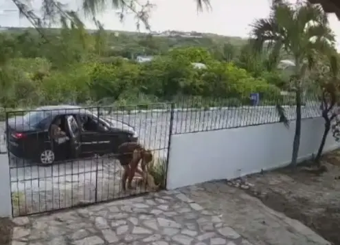 Câmeras de monitoramento registraram o momento que uma mulher abandona um cão e o empurra para dentro do quintal de uma casa na cidade de Conde, na Paraíba. As imagens mostram a mulher descendo de um carro com o cãozinho no colo, andando até o portão e forçando o animal a entrar pelas barras do portão. Após deixar o cachorro, que chora muito, no local, ela volta para o carro e vai embora.