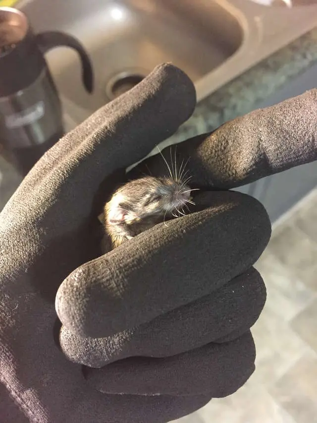 Quando Martin chegou, ela encontrou a pequena rata sentado em um frasco que sua mãe tinha colocado. A princípio, as duas acharam que o animal estava morto.