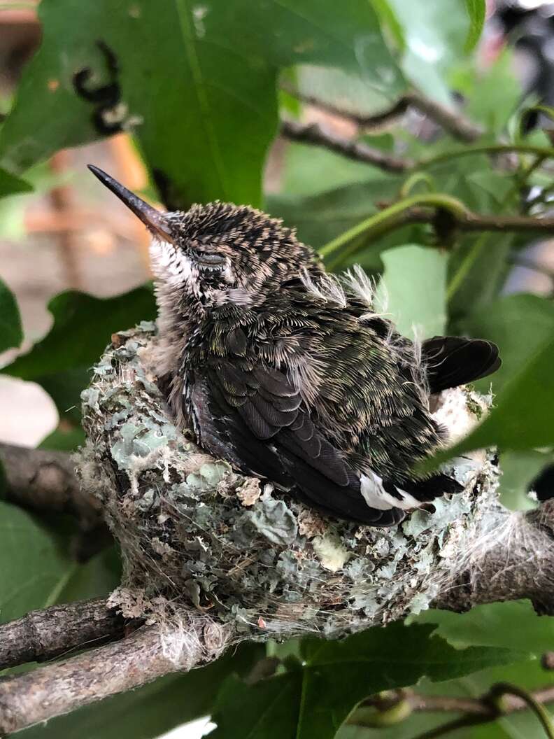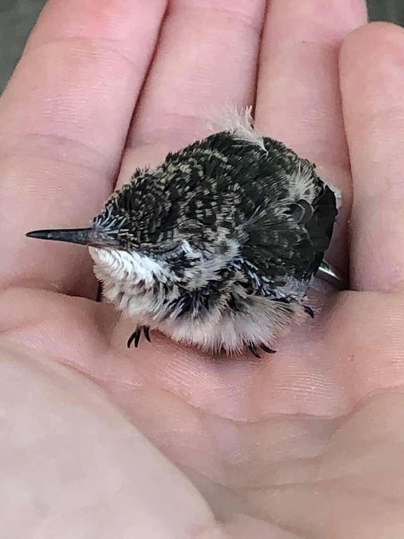 “Fui até ele porque não tinha certeza e, quando me agachei, percebi que era um bebê beija-flor!” disse Rosa.