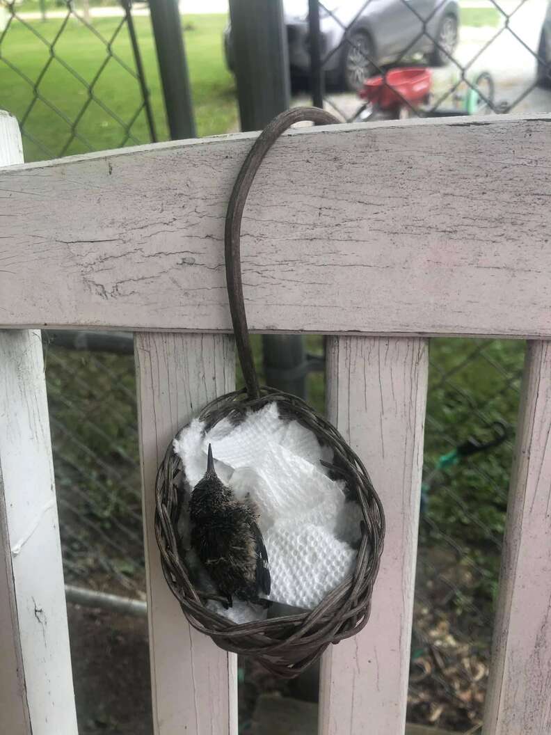 Rose saiu para tentar localizar o ninho do bebê; no entanto, os ninhos de beija-flores são normalmente construídos no alto de árvores ou arbustos espessos e são do tamanho de uma bola de pingue-pongue. Com um ninho tão pequeno e tão bem camuflado, ela teve dificuldade de localizá-lo.