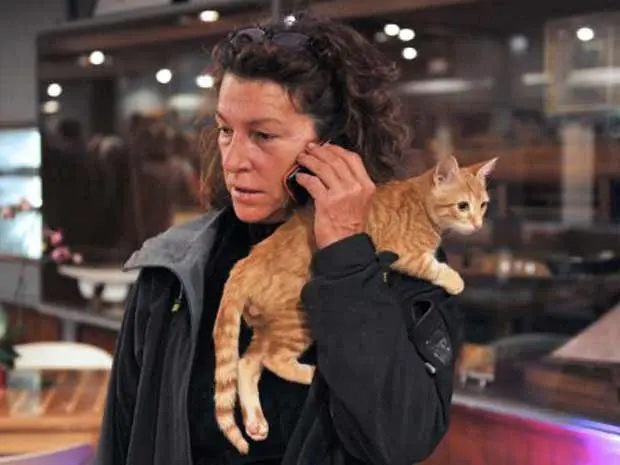 Recuperada, a navegadora ficou emocionada ao reencontrou o gato ao sair do hospital.