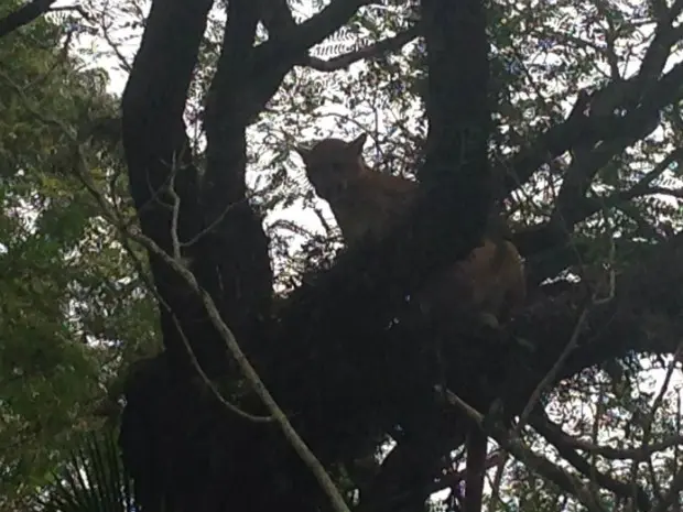O caseiro do local, Jorge Luiz Maria, foi o primeiro a ver o felino. Ele conta que a onça subiu na árvore por medo de um cachorro. “Logo de manhã vi a onça andando, acho que procurando comida. O cachorro deixou ela acuada, que então subiu na árvore. Ela é grande, tem mais ou menos 1,70 metro de comprimento. Assusta”, brinca.