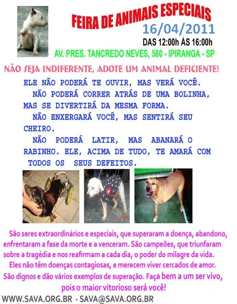 Confira alguns slides de nossas feiras de adoção de animais deficientes e idosos: