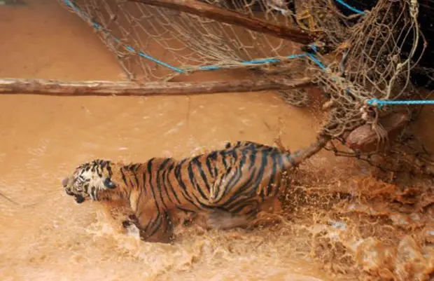 Foi necessária uma operação de resgate de 28 horas de duração para tirar uma tigresa de 3 anos de idade que caiu em um poço d’água de 6 metros de profundidade em Nagpur, na Índia.