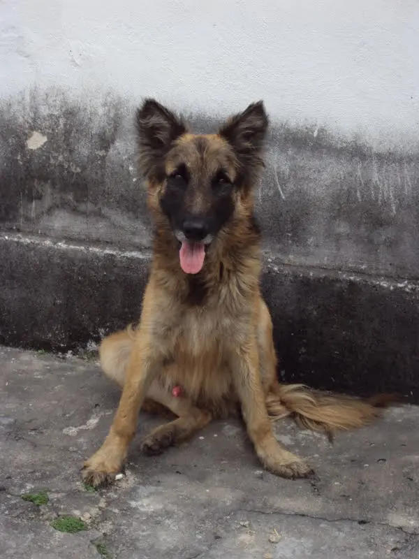 Dunda é um pastor alemão muito dócil e triste. Ele foi resgatado das ruas.