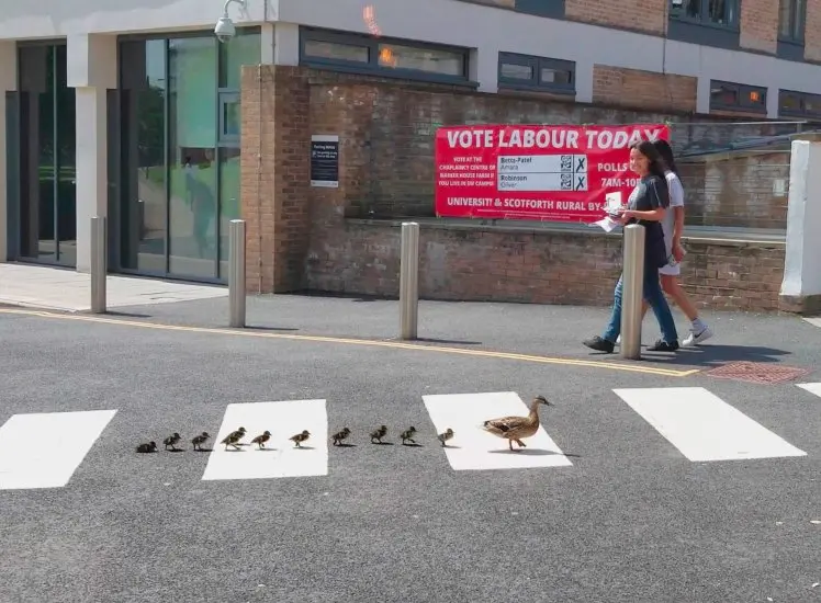 O jovem de 20 anos filmou-os passando por outros estudantes. Kenny, de Doncaster, South Yorkshire, comentou ao Metro: “Foi super fofo assisti-los atravessar pela faixa como os humanos o fariam. Eu não podia acreditar, e sabia que tinha que filmar”.