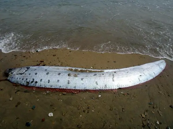 Quando foi encontrado, o peixe-remo já apresentava sinais de que teria sido parcialmente comido por gaivotas.