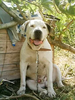 Na minha casa, há mais três pit bulls e o rotweiller Peter Pan. A Naomi, que foi retirada da rua ao passar em frente da minha casa (dois anos, linda pelagem preta e branca), o pit Cobi (preto e branco, um ano, bonzinho) que fugiu desesperado ao me ver saindo do ferro-velho, após fotografar a triste situação que ele e o outro pitbull estavam vivendo dentro de um fusca na ponta de um abismo, com queda num córrego fundo e com corredeira. Além da Arena, há muito tempo retirada das ruas.