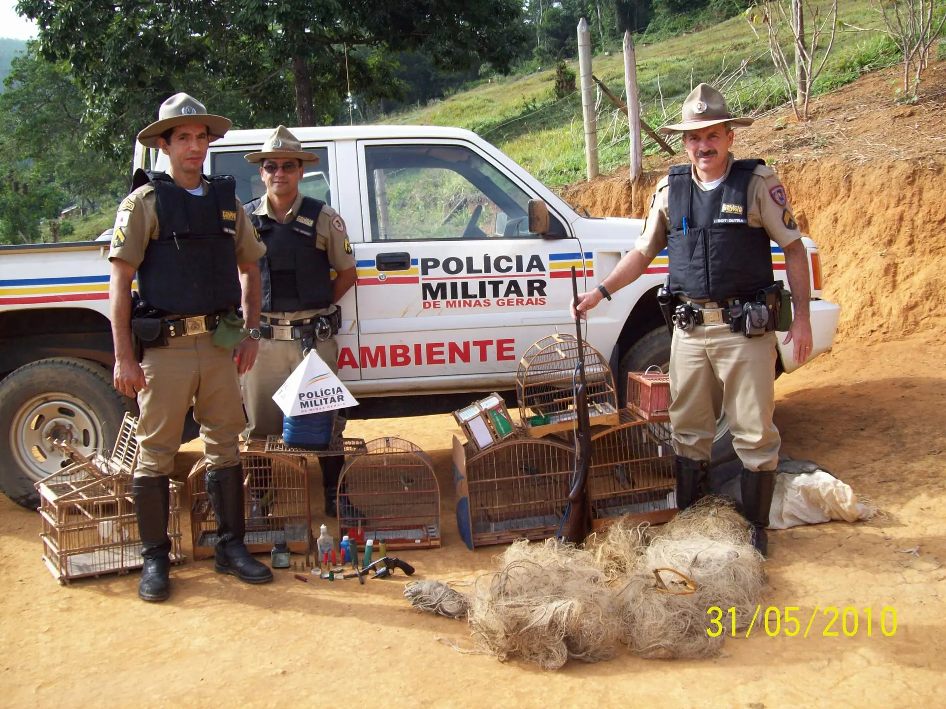 Da operação resultaram apreensões dos seguintes objetos: 3 armas de fogo, sendo 1 espingarda cal. 32, cartucheira usual na prática de caça predatória, 1 revólver cal. 38 e 1 garrucha cal. 32 adulterada para o cal .38; 12 cartuchos cal .38 intactos; 7 cartuchos cal .22 intactos; 3 cartuchos cal. 32 intactos; 1 recipiente contendo 66 espoletas; 5 recipiente contendo pólvora; 7 recipientes contendo chumbo; 2 caixas contendo espoleta; 7 pássaros da fauna silvestre brasileira, sendo: 5 pássaros da espécie trinca-ferro, 2 pássaros da espécie chiador; 1 fisga (material proibido utilizado para caça predatória) usualmente na caça de capivaras; 7 redes de emalhar fixa totalizando 105 m².