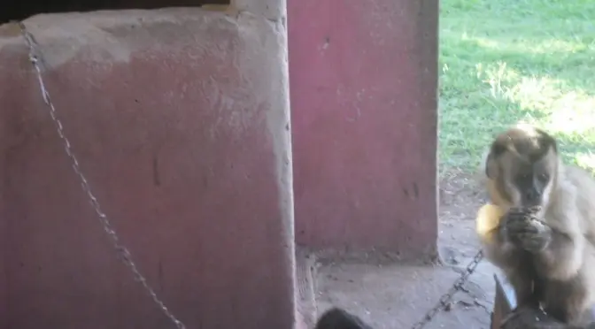 O capataz de uma fazenda em Miranda (MS) criava um macaco-prego sem autorização ambiental. O animal foi encontrado pela Polícia Militar Ambiental (PMA) em um recinto, amarrado a uma corrente ligada a uma coleira. O homem foi autuado e multado por crime ambiental.