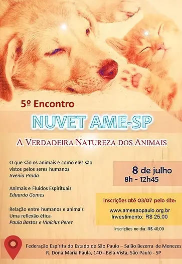 Quem responde essas perguntas é Irvênia Prada, autora dos livros “Os Animais têm Alma?” e “A questão espiritual dos animais”, numa entrevista exclusiva para a ANDA. A médica veterinária formada pela USP é coordenadora do Nuvet – Núcleo de Medicina Veterinária e Espiritualidade de SP que, inclusive, oferece, no próximo dia 8 de julho, o evento aberto ao público “A Verdadeira Natureza dos Animais” na Federação Espírita de SP (vide cartaz abaixo). Acompanhe:
