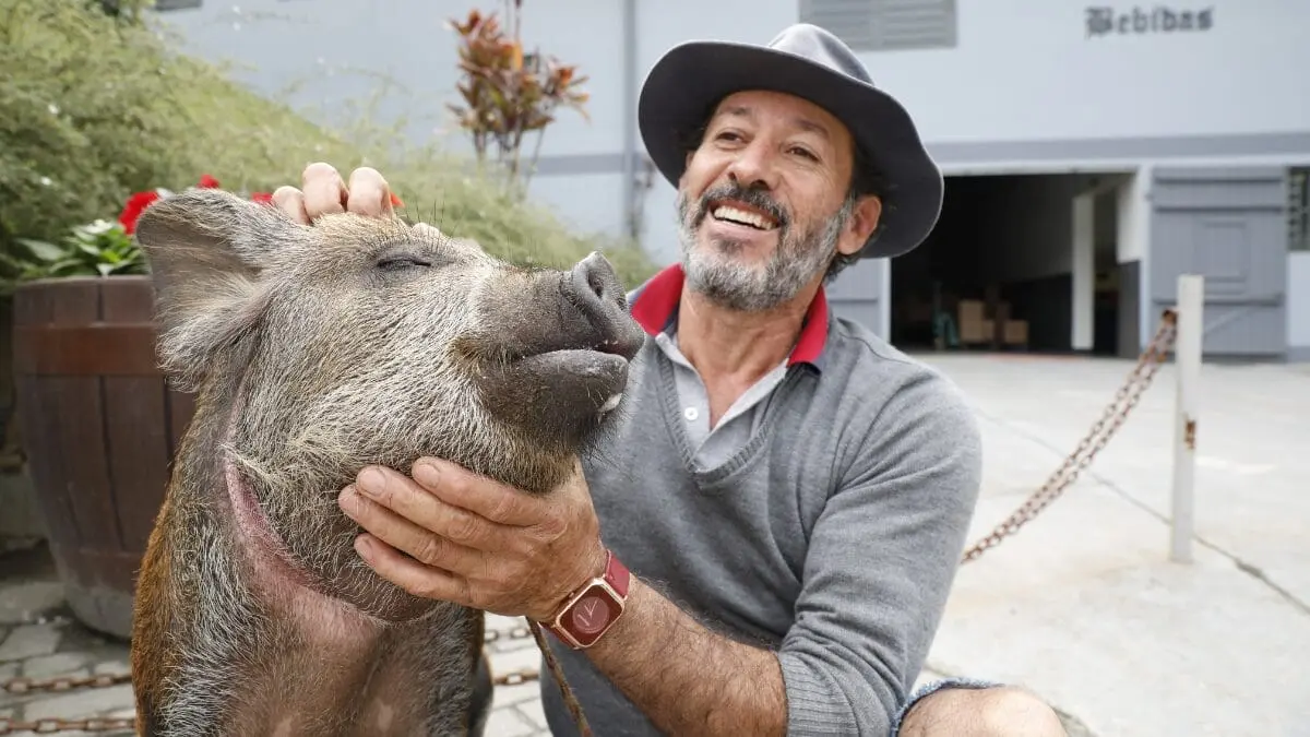 Alcenir dos Santos era quem segurava a coleira. Morador da Vila há sete anos, desde que o vídeo “estourou”, o homem constantemente é questionado sobre a história de Princesa. Com menos de um ano, a porca é criada como se fosse um dos três cães do casal. Sempre solta no terreno, tem uma vida boa, garante o tutor, que é apaixonado pelos animais.