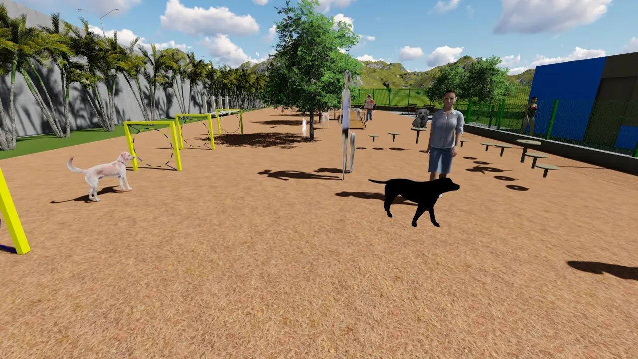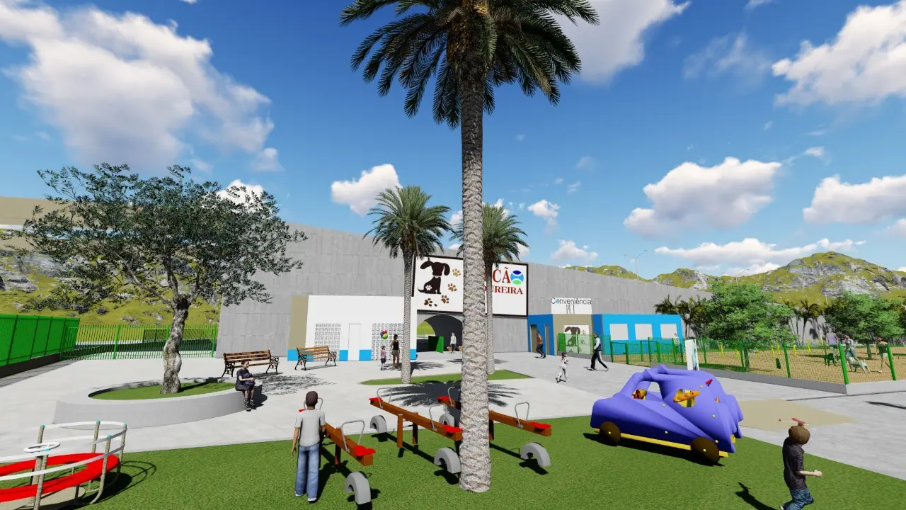 A área destinada aos pets tem espaço em saibro, arborizado, devidamente cercado com alambrado de 1,20m de altura e espaço de 1.810m². O espaço Kids, com 260m², tem bastante área verde, brinquedos e também é cercado com alambrado de 1,20m de altura e espaço tem 260m². O local conta ainda conta com amplo espaço de estacionamento, com local de embarque e desembarque, e entrada e saída de veículos e vagas. O espaço também tem um ambiente de convivência, destinado para as pessoas aguardarem e socializarem enquanto seus pets e/ou seus filhos brincam.