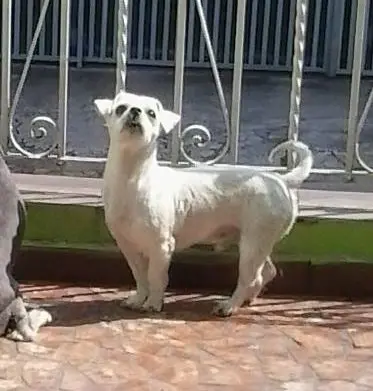 É um maltês, atende por nome BUDA, tem 5 anos, está tosado, é todo branco. Próximo aos olhos está com pelo escuro devido às lágrimas que escorrem. É dócil e brincalhão. Tenho um outro que está sofrendo muito com a ausência do Buda.