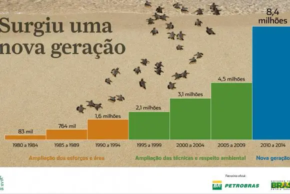 “O número de tartarugas, que vinha subindo aos poucos a cada cinco anos, no último quinquênio deu um pulo radical”. Isso se deve, segundo Marcovaldi, a uma nova geração de tartarugas que estão reocupando as praias brasileiras. O número evoluiu de 4,5 milhões de filhotes por ano, entre 2005 e 2009, para 8,4 milhões/ano. “Dobrou, praticamente”.