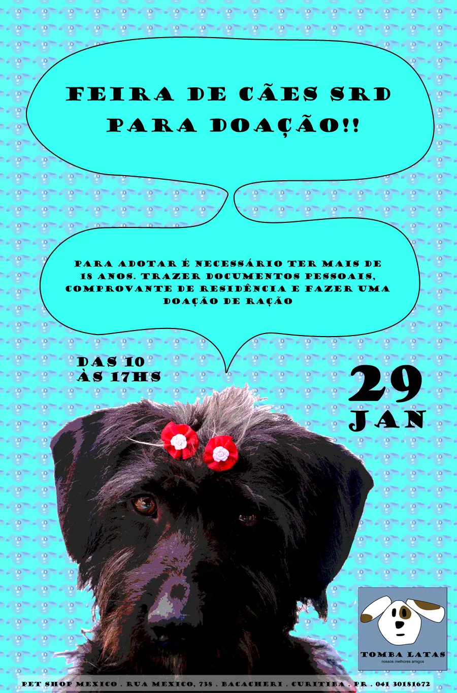 Será realizada uma feira doação de cães no último sábado do mês, dia 27 de janeiro. Lindos cachorrinhos SRD aguardam adotantes amorosos e responsáveis.