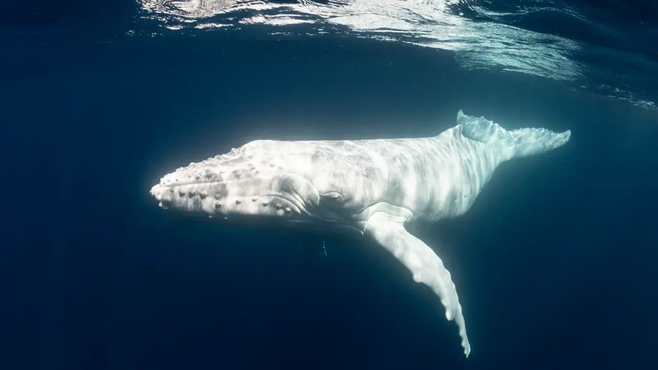 A aparência branca do mamífero marinho é resultado de uma mutação que impede a produção normal de pigmentos, por isso a condição também é chamada de hipopigmentação. No entanto, além do fascínio, sua coloração a torna mais visível a predadores e embarcações, aumentando o risco de acidentes.