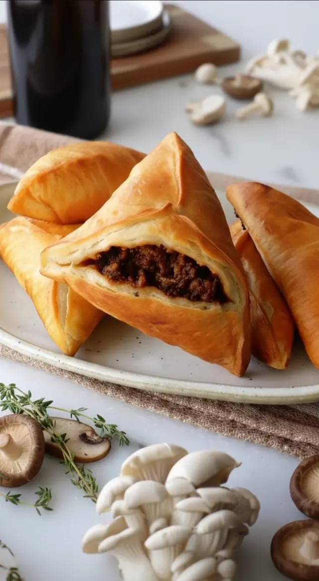 Nesta versão vegana, esqueça a carne de origem animal e comtemple a sofisticação do cogumelo e das nozes no seu salgado árabe favorito. Juntos, eles criam uma textura que simula perfeitamente o recheio de “carne moída”, mas com uma complexidade de sabor muito maior.