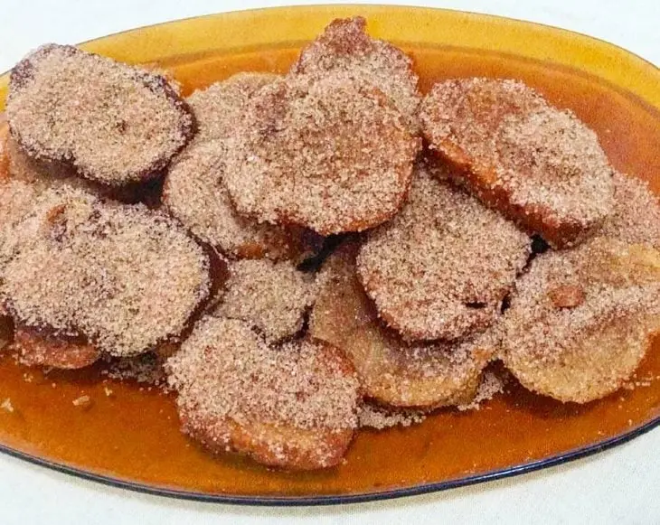 Empane na mistura de açúcar com canela e coloque em uma papel toalha para retirar o excesso de gordura.