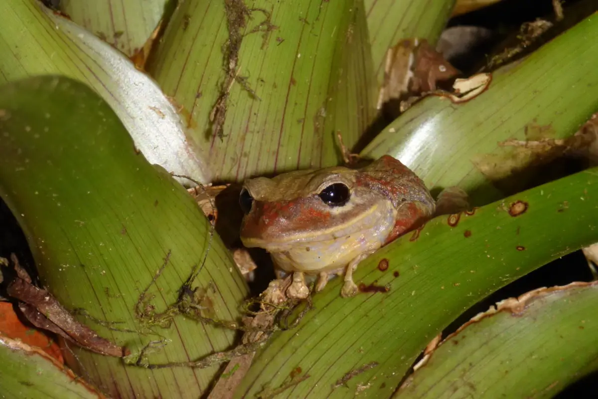 ”Durante a primeira noite, a caminho do topo do monte Chucanti, a floresta estava muito escura e totalmente coberta por neblina,” Batista disse ao jornal Mongabay. “Quando eram 10 horas da noite, em meio às folhas das bromélias, nós avistamos o sapo, com seus lábios amarelados e grandes olhos negros. Imediatamente percebemos que se trataria de uma espécie diferente de todas as já encontradas no Panamá.”