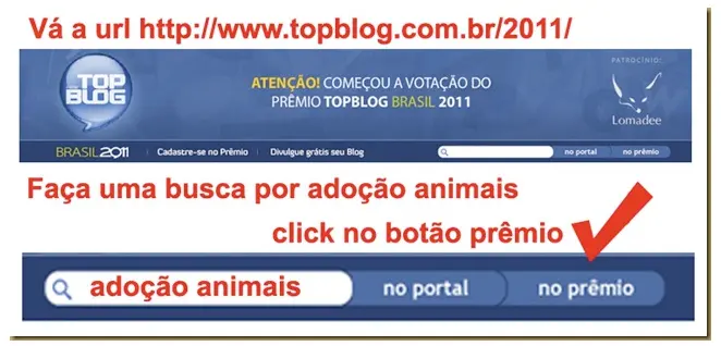 O blog http://adotacao.blogspot.com, está concorrendo ao prêmio TOPBLOG2011 (sendo que a premiação é somente um selo e/ou certificado e uma boa divulgação do blog).