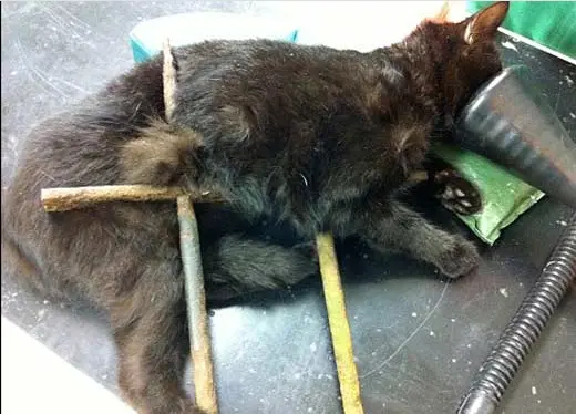 Gato fica preso em grade, passa por cirurgia e sobrevive na Inglaterra