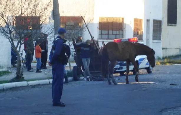Cavalo fica gravemente ferido em acidente entre carroça e caminhão