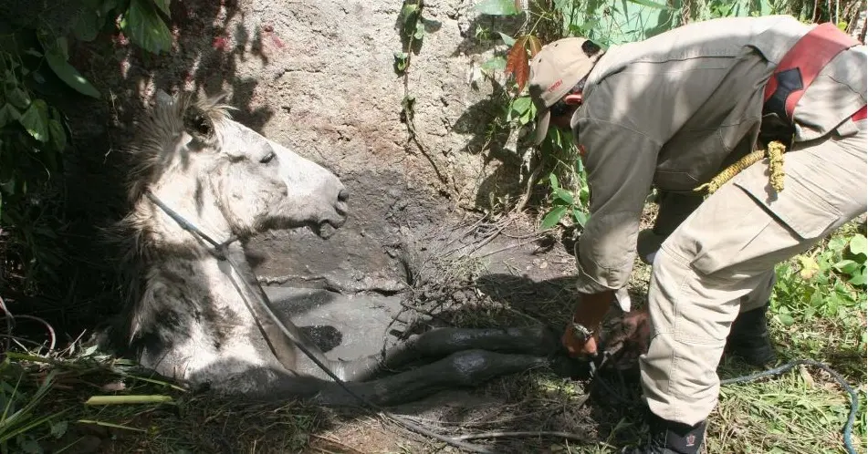 Bombeiros são acionados para salvar cavalo que caiu em buraco no RJ