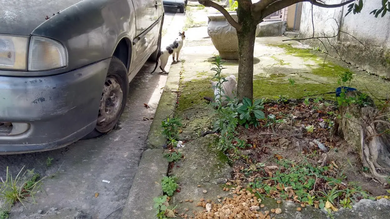 Gatos abandonados se abrigam embaixo de carro na Vila Albertina (SP)