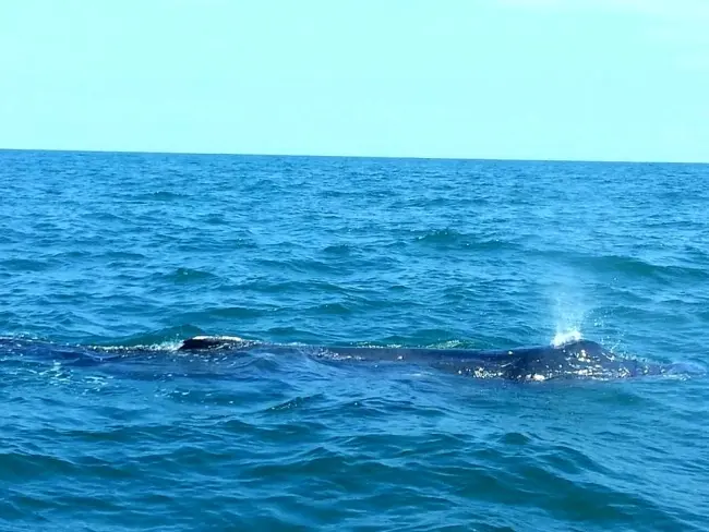 Filhote de baleia jubarte é avistado nas proximidades da Enseada