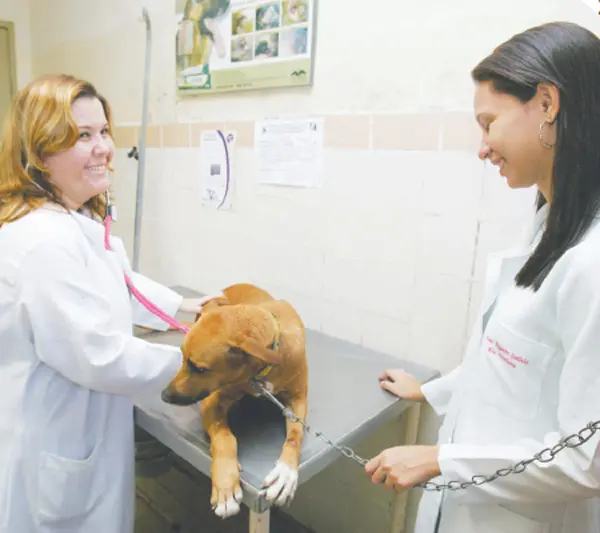 Equipe do Hospital Veterinário atende cachorro em extinção, em Uberaba (MG)