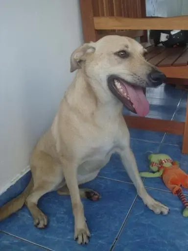 Cadela mestiça de labrador que vive em abrigo aguarda adoção, em SP