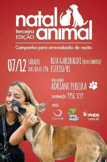 Terceira edição da Campanha Natal Animal de Esteio acontece no próximo dia 07
