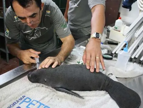 Filhote de peixe-boi ferido por rede de pesca é resgatado no PA