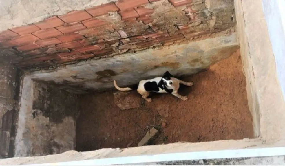 Cachorro “late por socorro” e é resgatado de cova de cemitério no ES