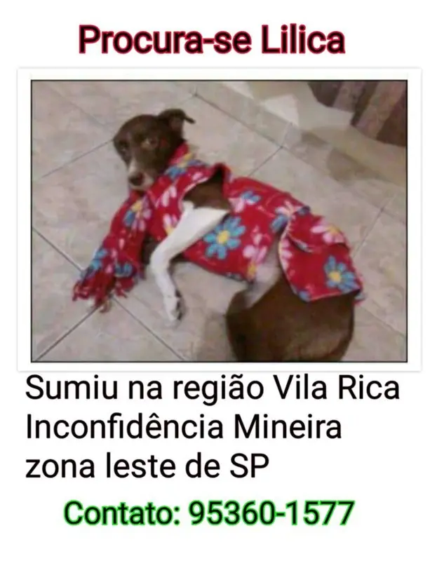 Cachorrinha desaparece em São Paulo (SP) deixando tutora aflita por notícias